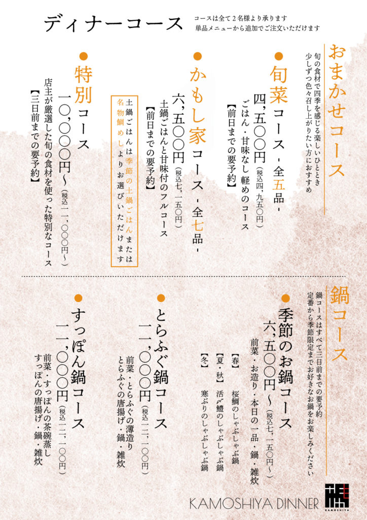 に新しくなります。どちらも2名様より前日までのご予約でご用意しております。