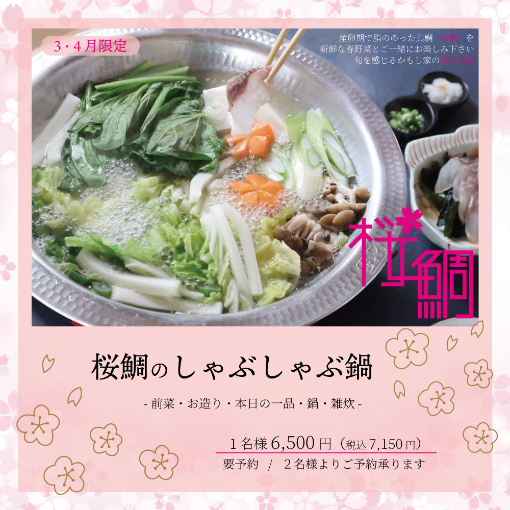 3・4月は『桜鯛のしゃぶしゃぶ鍋』で御座います。
