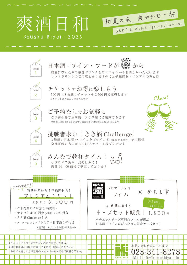 今回は初夏の日本酒とワインを楽しめるイベント「爽酒日和」